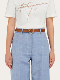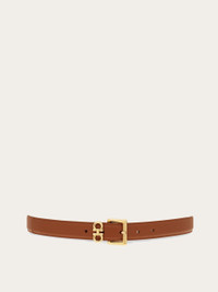 The mini golden Gancini loop adds a playful twist to this Ferragamo belt. Made of soft calfskin with a natural grainy finish, it has a golden square buckle with rounded edges. The 2.5cm width confirms an elegant appeal. - height 0.9 IN - Composition: calfskin - Made in ITALY - Product code: 230346 780417