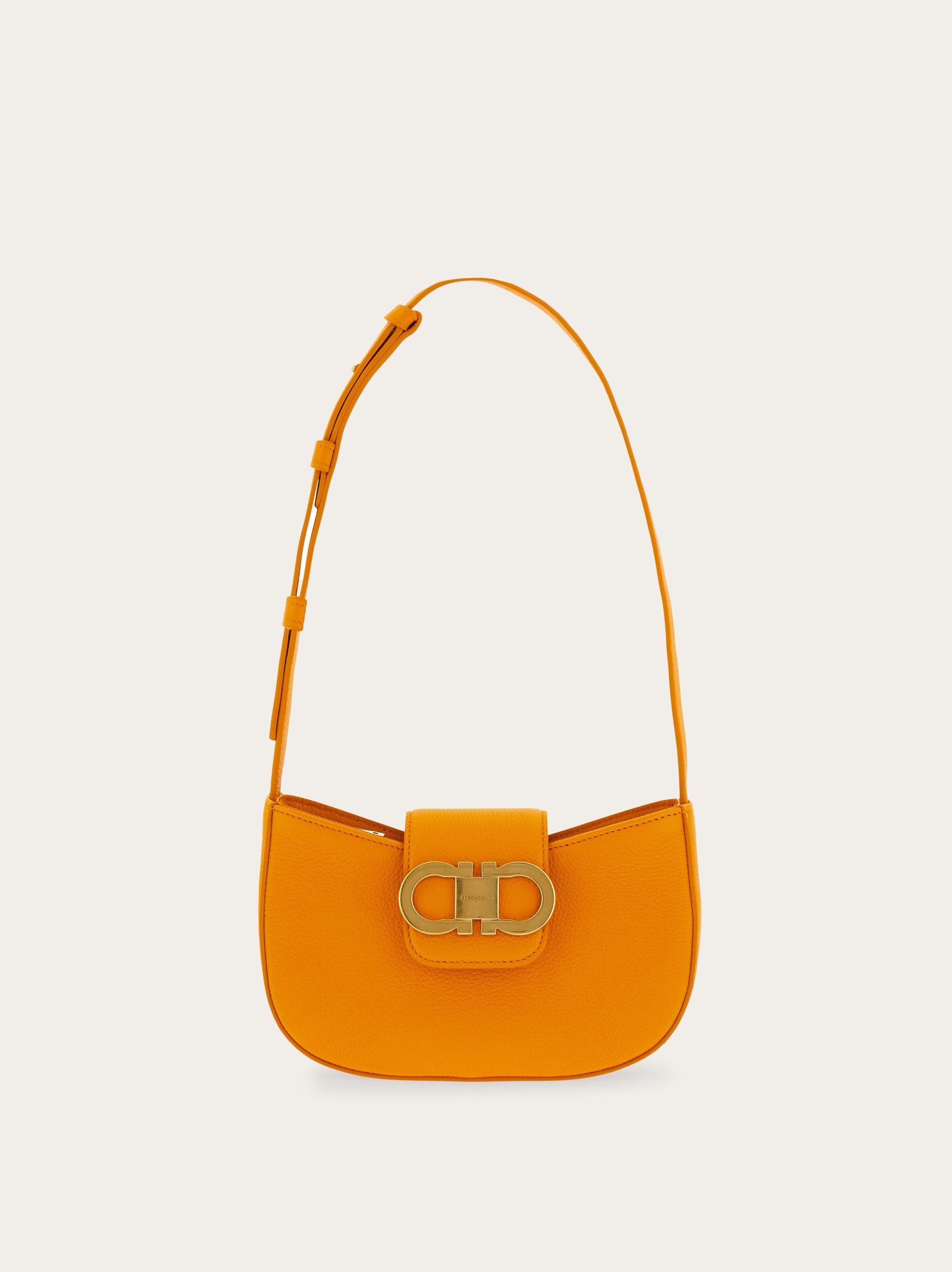 Effortless elegance in a compact form, this new mini bag showcases gently rounded edges, a zip closure, and a top bridge accented with a signature Gancini detail. The leather-lined interior features dedicated slots for cards and documents, while the adjustable strap allows for refined shoulder styling. - height 4.5 IN length 7.8 IN width 2.1 IN - Composition: hammered calfskin - Mini - Made in ITALY - Product code: 220947 785944