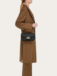 A ladylike silhouette with a contemporary attitude, the eat-west edition of the Ferragamo cross body is both practical and chic. Cut from hammered calfskin leather, it features a curved front flap that fastens at the front via a golden Gancini clasp. A slit pocket on the back and well organized interior provide ample space for personal effects. A metallic chain and leather cross body strap offer versatile styling options. - A) Height 5.3 IN B) Length 9.8 IN C) Width 1.9 IN - Composition: hammered calfskin - Made in ITALY - Product code: 21A073 784611