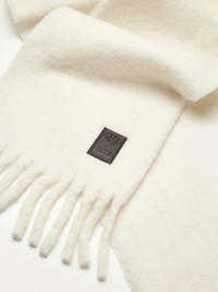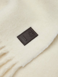 Warm, soft and chunky, this alpaca-blend scarf plays around with texture and color blocking to offer a decidedly contemporary aesthetic. Featuring a leather tag with embossed Gancini accent, it is finished off with braided fringing on the hem. - length 96.4 IN width 11.0 IN - Composition: 50% alpaca, 30% wool, 20% polyamide - Made in ITALY - Product code: 320789 770184