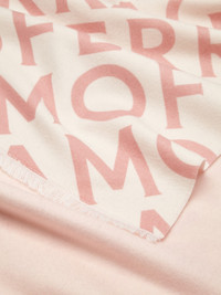 A new take on the metropolitan scarf, crafted from wool and cashmere. One side is solid color, while the other boasts a macro-lettering pattern in a contrasting ombre hue. Mini fringing on hem. - length 72.8 IN width 13.7 IN - Composition: 95% wool, 5% cashmere - Made in ITALY - Product code: 320795 770201