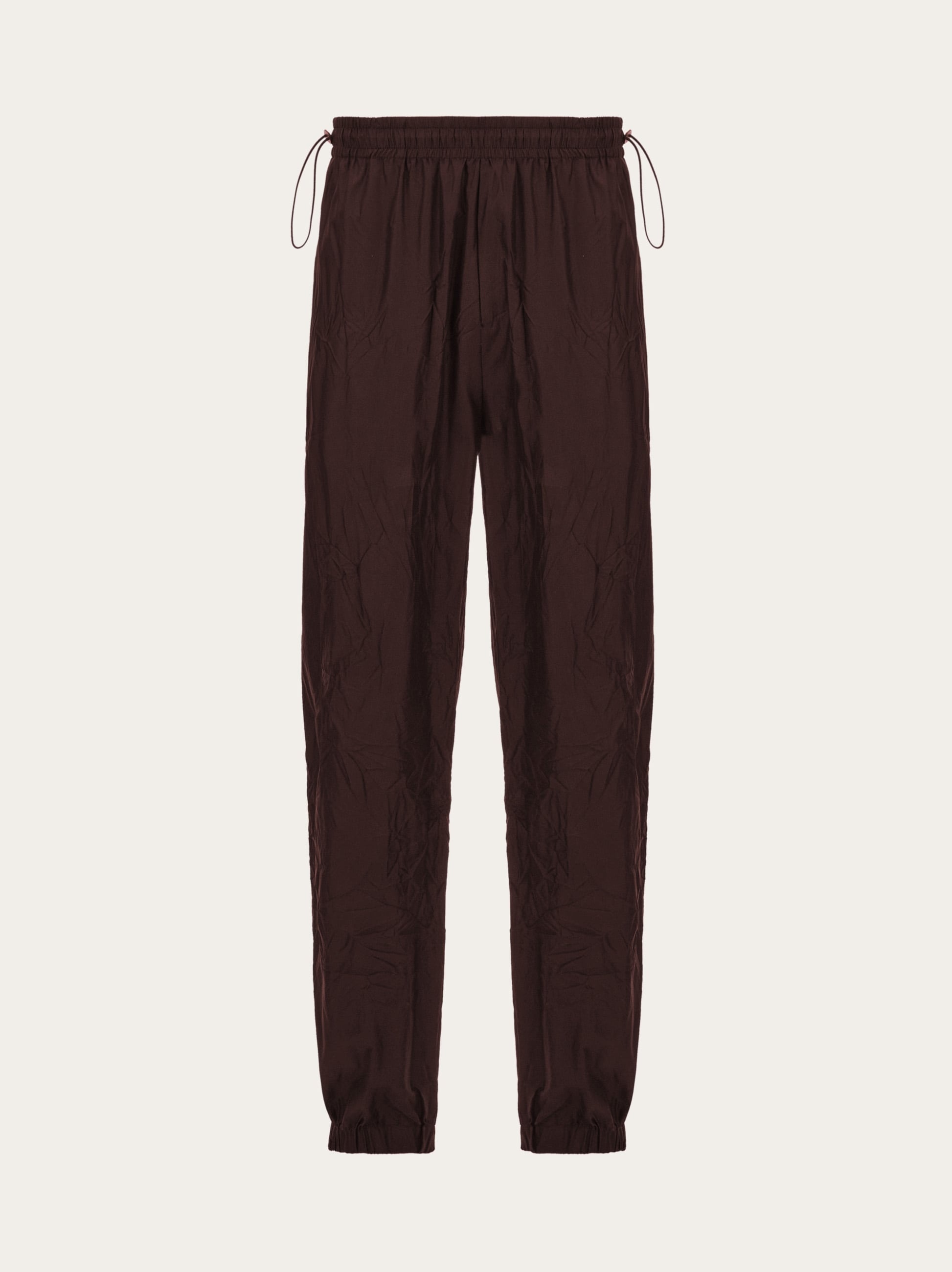 Coated crinkled silk gives these relaxed joggers a high end feel. With a drawstring waist and leather stoppers, the regular fit features a rubber logo tab and elasticated ankles. - Composition: 93% silk, 7% polyurethane - Made in ITALY - Product code: 144462 782825