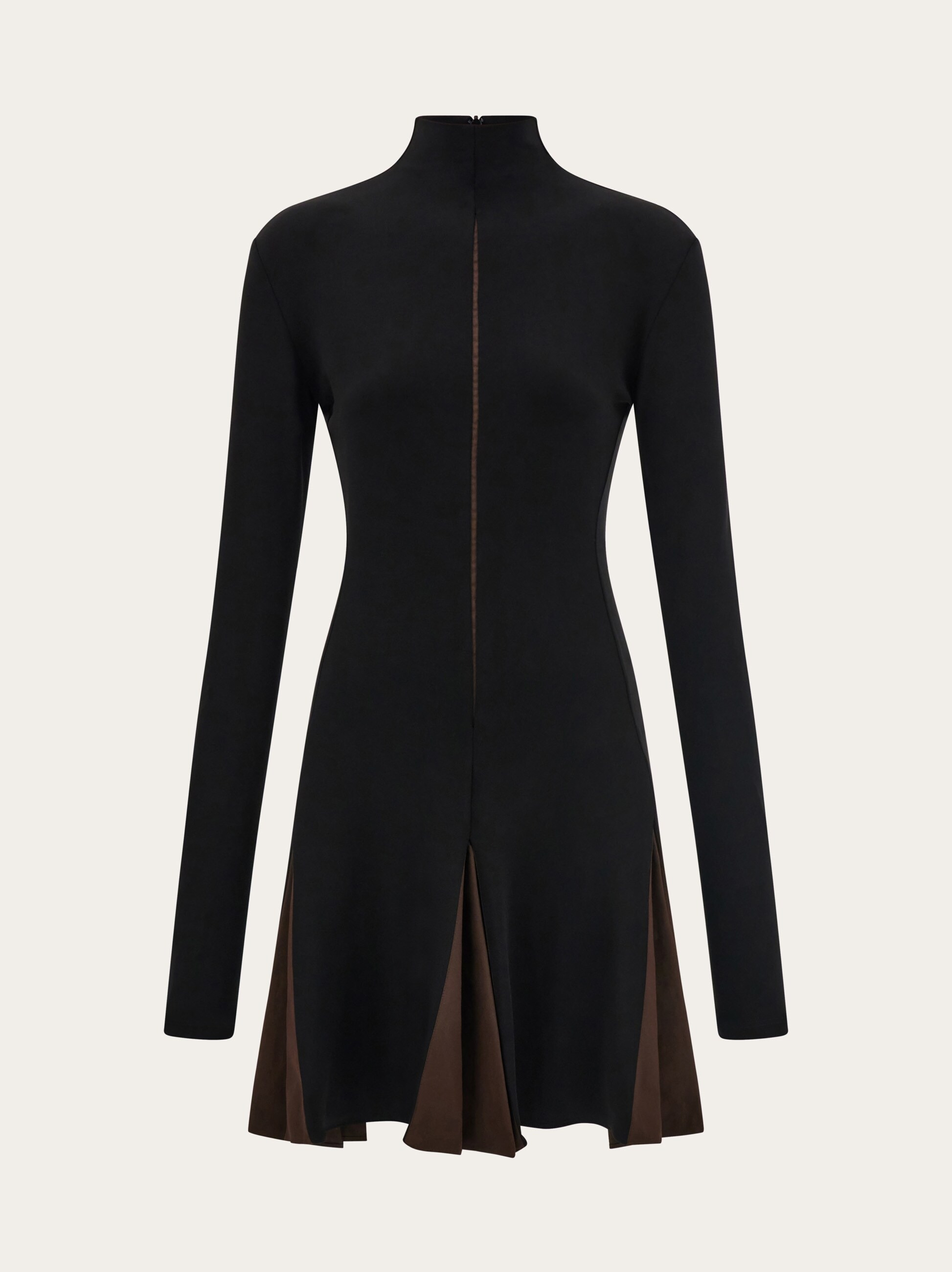 Short fit and flare dress made from pure jersey viscose. The strategically placed slits with contrasting inserts are inspired by the artist Lucio Fontana. With a high collar and long sleeves, it has a short, flared skirt cut at mid-thigh. Made using 95% responsibly-sourced viscose. - Composition: 95% viscose, 5% elastane - Made in ITALY - Product code: 13C665 788937