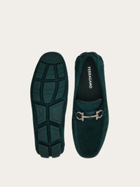 Casual yet refined, this driver loafer features a rounded profile with apron-toe seams and the signature ruthenium-tone Gancini buckle across the instep. The tubular construction method, which involves meticulous hand-stitching and assembly, ensures a flexible and lightweight silhouette. - Composition: suede calfskin - Made in ITALY - Product code: 02C398 784306