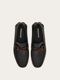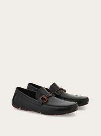 Casual yet refined, this driver loafer features a rounded profile with apron-toe seams and the signature Gancini buckle in a lacquered finish, enhanced by two-tone woven detailing. The rubber sole with a custom tread pattern ensures a dynamic stride. It's crafted using the tubular construction method, which involves meticulous hand-stitching and assembly, resulting in a flexible and lightweight silhouette. - Composition: calfskin - Made in ITALY - Product code: 02B796 784319
