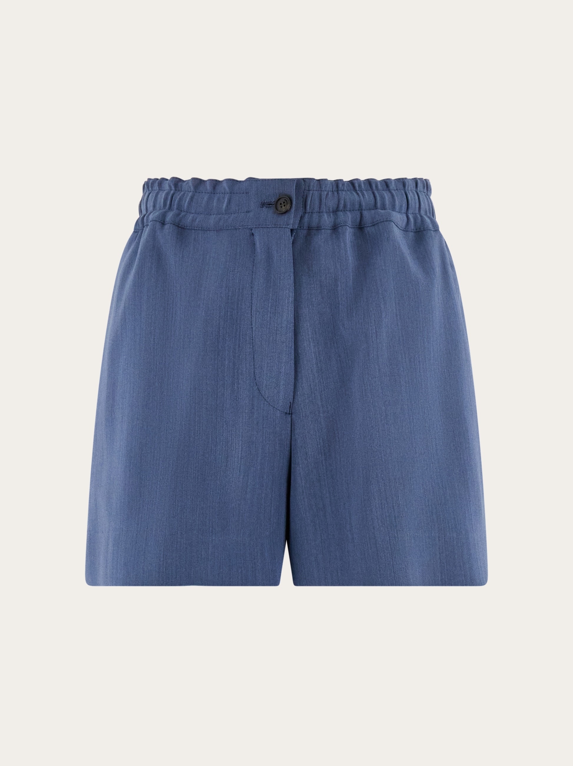 Made of wool faille with a fine vertical fleck, the delicate yet stiff fabric of these city shorts has an impeccable drape. The business-like feel of the silhouette is softened by an elasticated drawstring waist. Slit pockets at the hips and a flap pocket at the back complete the design. Pair with the matching blazer for a current uptown look. - Composition: 73% viscose, 27% pure virgin wool - Model measurements: Height 5' 9"/175 cm; Bust 30"/76 cm; Waist 24"/61 cm; Hips 34½"/87 cm - Model wearing: 38/XS - Made in ITALY - Product code: 13H324 784749