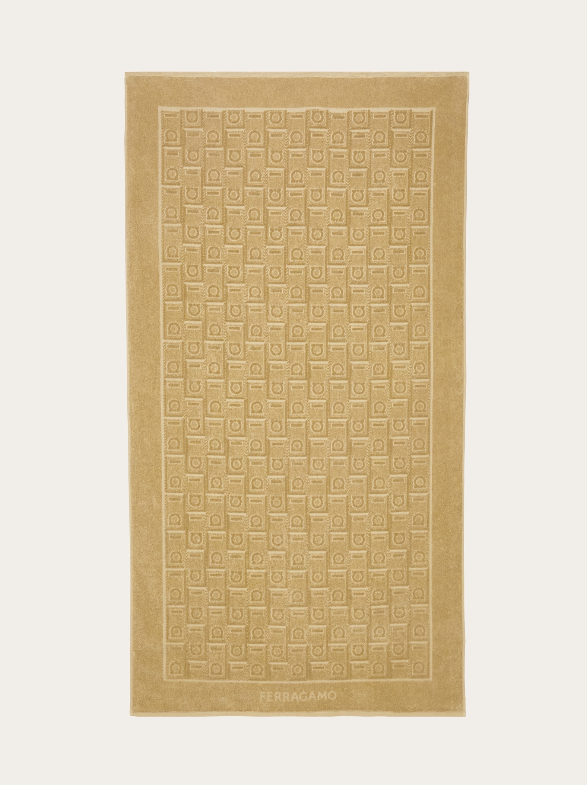 Heavy cotton beach towel featuring a jacquard Ferragamo Monogram all over. The pattern is tonal, completed by an embroidered signature. - length 70.8 IN width 39.3 IN - Composition: 100% cotton - Made in ITALY - Product code: 520138 784069