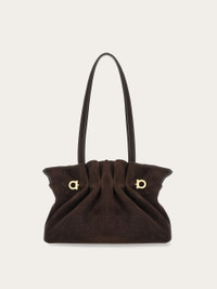 A touch of effortless elegance, destined to be your new crush. This shoulder bag reinterprets an archive design with a modern edge. The clean-cut silhouette is enhanced by soft leather, gathered at the top with a Gancio pin for a bold yet effortless look. - A) Height 7.0 IN B) Length 10.6 IN C) Width 4.3 IN - Composition: calfskin suede - Handle drop: 9.4 in/24 cm - Small - Made in ITALY - Product code: 219959 785609