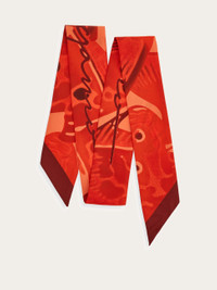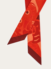 A most versatile accessory, the silk bandeau can be worn in your hair, around your neck, as a belt, or to decorate your bag. This version features the vibrant Fish print, a geometric and imaginative take on playful aquatic shapes, rendered in radiant red tones. - length 55.1 IN width 2.7 IN - Composition: 100% silk - Made in ITALY - Product code: 321031 783758