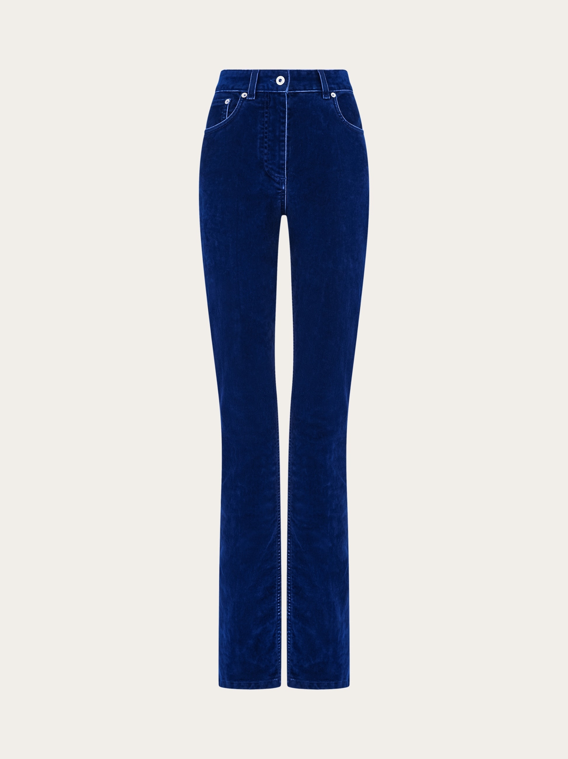 Soft, flocked cotton gives this garment dyed five pocket trouser an almost velvety feel. The straight fit is expertly cut according to the textbook denim details: custom doughnut buttons and rivets, with tonal stitching and a suede logo tab at the back. - Composition: 49% cotton, 49% viscose, 2% elastane - Model measurements: Height 5' 10"/178 cm; Bust 31½ "/80 cm; Waist 23½"/60 cm; Hips 34 "/88 cm - Model wearing: 38 - Made in ITALY - Product code: 13G444 780540