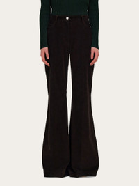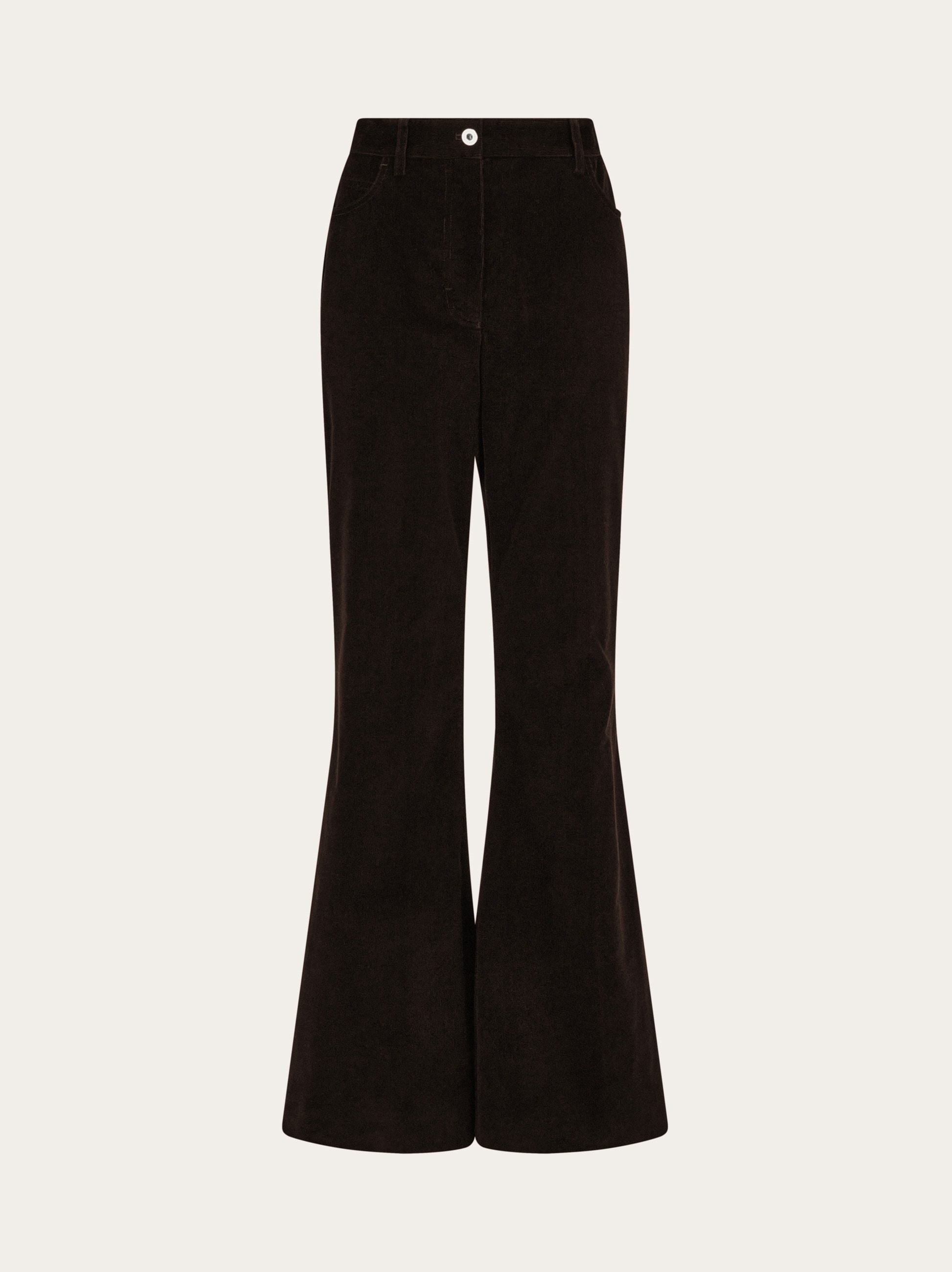 Seventies-inspired cords with a high waist and flared leg for a most flattering silhouette. A custom button and back patch complete the design. - Composition: 98% cotton, 2% elastane - Model measurements: Height 5' 10"/178 cm; Bust 32 / 81cm; Waist 25"/63 cm; Hips 34½"/88 cm - Model wearing: 38/XS - Made in ITALY - Product code: 13G988 785197