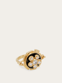 A timelessly charming ring inspired by vintage designs, featuring a slightly raised central motif for a touch of movement. The golden brass flower gleams with a crystal-studded corolla, set against a glossy drop of black enamel. Elegant, feminine, and effortlessly refined. - Composition: brass - Made in ITALY - Product code: 760957 791512