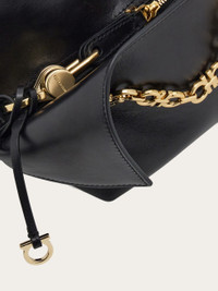 A captivating shape with sophisticated details: introducing the new Ferragamo shoulder bag. The folded corners enhance the soft, fluid feel of the calfskin leather, complemented by the glam glow of the golden hardware. A double slider zip opens to reveal a spacious lined interior with zip pocket. Detailed with small custom charm and covered key fob. - A) Height 5.5 IN B) Length 10.2 IN C) Width 5.1 IN - Composition: calfskin - Small - Made in ITALY - Product code: 21A371 787861