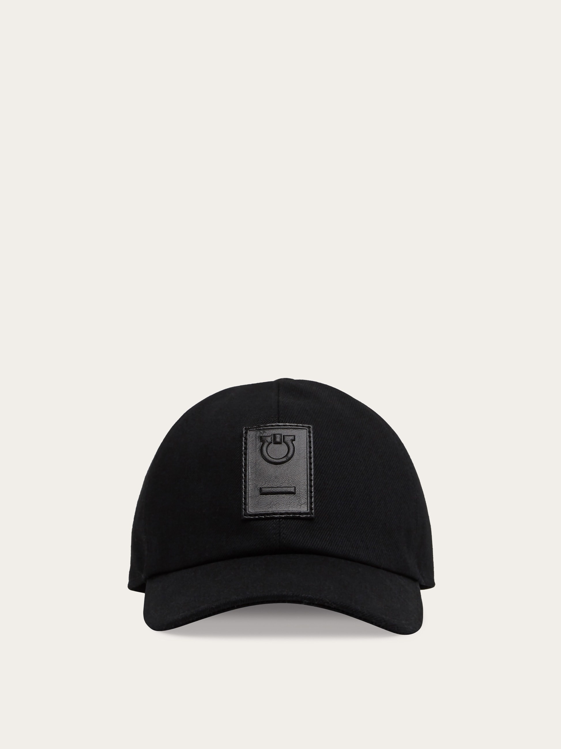 Black denim baseball cap featuring a topstitched brim and a leather patch with embossed Gancini. This accessory is complemented by the cotton lining and adjustable strap on the back. - Composition: 100% cotton - Made in ITALY - Product code: 560073 771442
