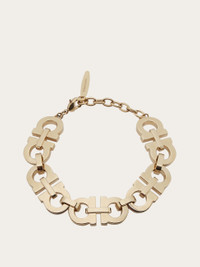 A series of chunky gold-toned Gancini makes up this chic new Ferragamo bracelet. The clasp is cleverly concealed as one of the chain links. - Composition: brass - Made in ITALY - Product code: 760897 786534