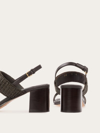 With its two-strap design and softly squared toe, this sandal is at once timeless and of-the-moment. The artful details elevate it beyond the ordinary: the woven raffia insert in a tonal hue and the golden Gancini buckle across the instep. - Composition: raffia and calfskin - Made in ITALY - Product code: 01K501 784354