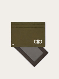 Exuding a sophisticated allure, this compact card holder is crafted from hammered calfskin with a delicate metallic finish. Complete with a tonal matte Gancini logo and a small pull-out ID holder insert. - height 3.1 IN length 3.9 IN - Composition: hammered calfskin - Made in ITALY - Product code: 66A061 779738