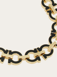 Sophisticated choker necklace composed of a chain of gold-tone Gancini with contrasting black resin inserts. The elements are connected by central rectangular plates. Custom adjustable clasp. - Composition: brass and resin - Made in ITALY - Product code: 760894 785874