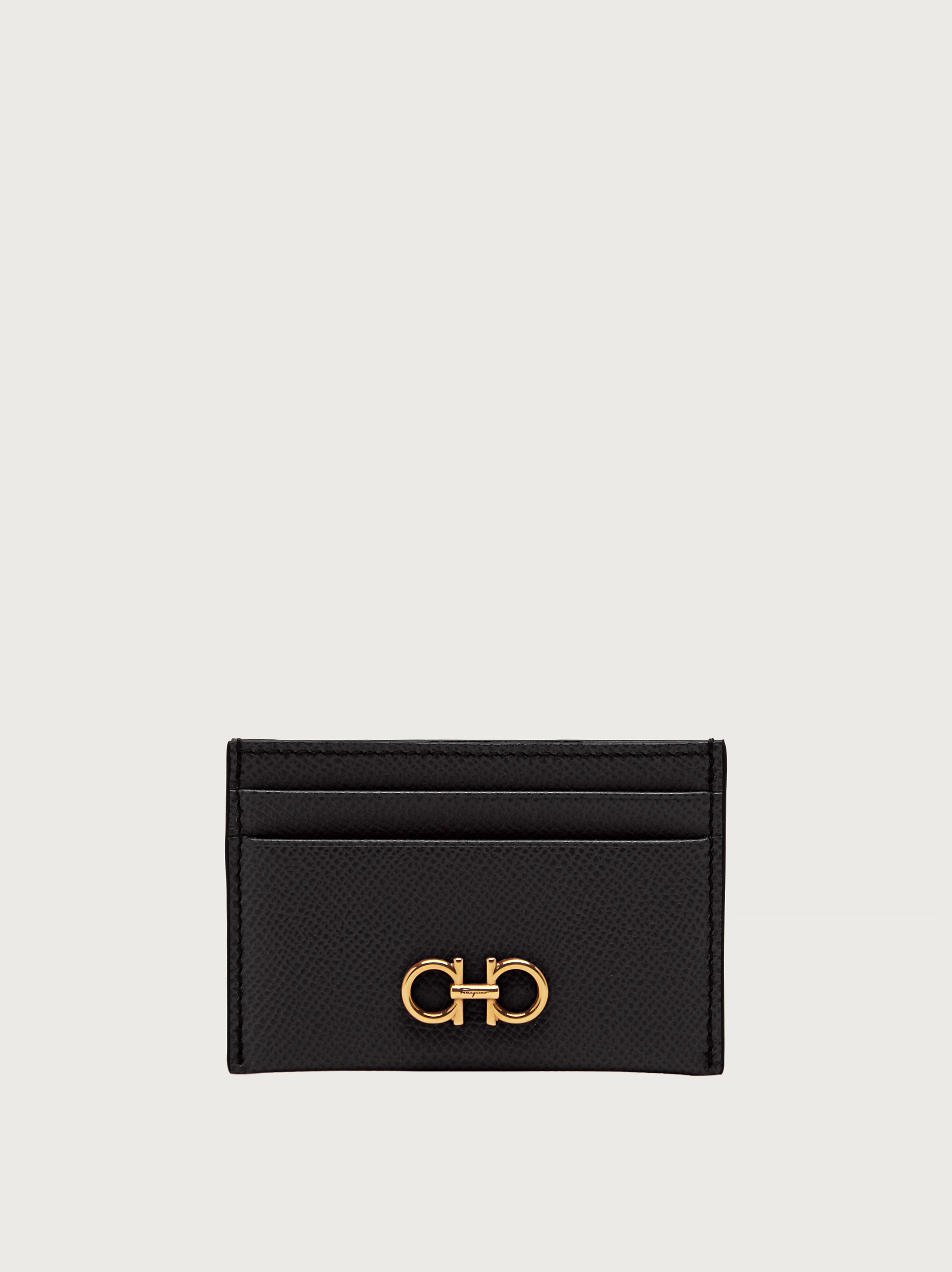 Compact, versatile, easy chic the credit card holder is the perfect ally to keep your essentials close at hand. This chic little space saver is made of hammered calf leather and decorated with an antique gold Gancini on the front for an exclusive finish. - height 2.7 IN length 4.1 IN width 0.1 IN - Composition: hammered calf leather - 5 card slots - Made in ITALY - Product code: 220007 742164
