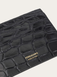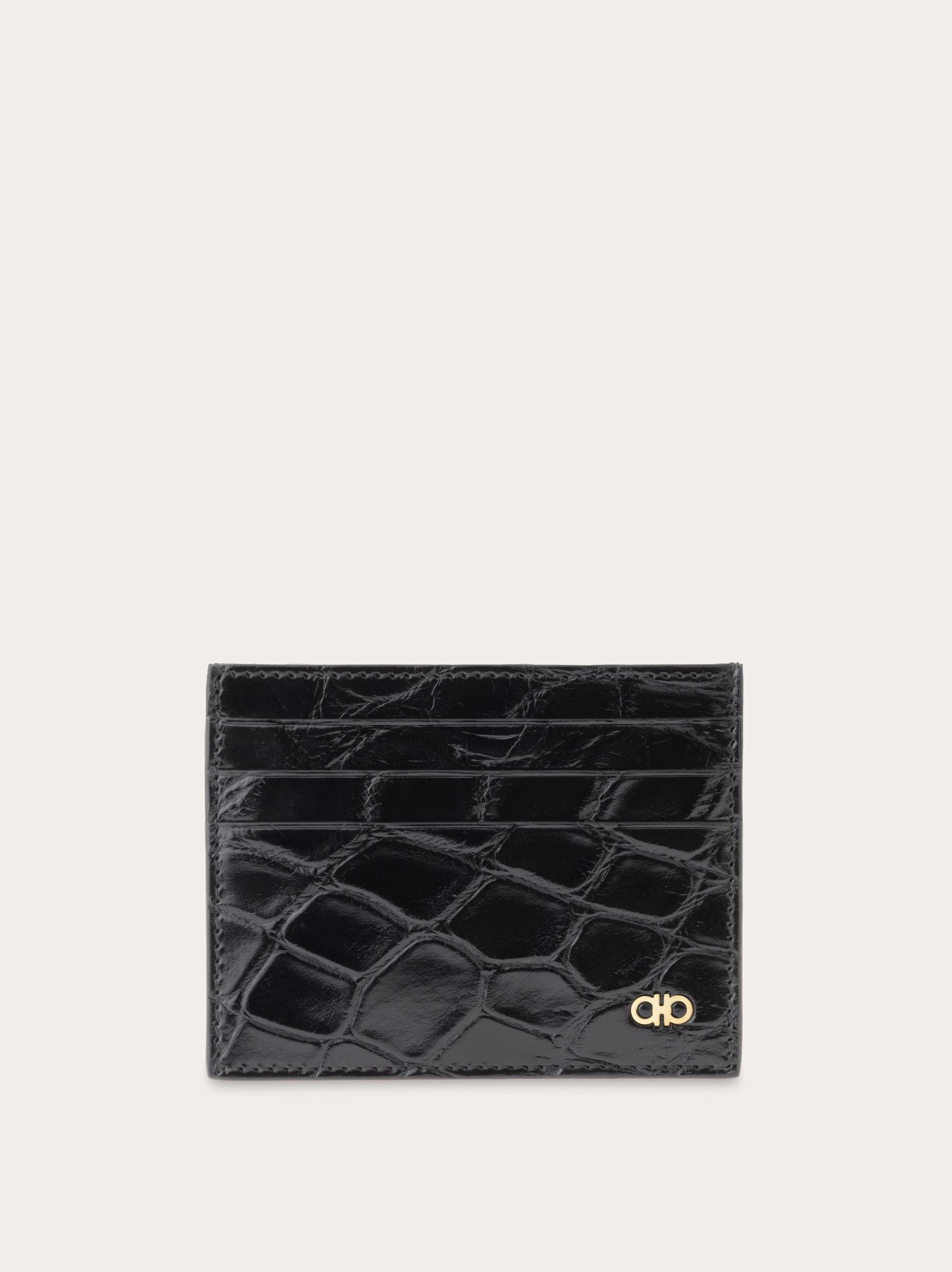 A sleek and refined cardholder, elevated by a luxe alligator detail. Designed for both style and function, it features slots on both sides, a central flat pocket, and a signature Gancini ornament—perfectly Ferragamo in every way. - height 3.1 IN length 3.9 IN - Composition: alligator - Made in ITALY - Product code: 661478 787165