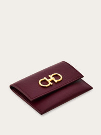 New credit card holder with button closure in hammered calfskin. The flap is decorated with an antique gold double Gancini, and the interior has several slots and the back is completed with a flat pocket for extra room. - height 2.9 IN length 3.9 IN width 0.3 IN - Composition: hammered calfskin - Made in ITALY - Product code: 220861 789868