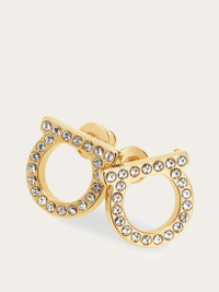 These earrings feature the iconic Gancini in gold-tone brass adorned with mini crystals for a glam chic finish. Height 11,6 mm, width 12,2 mm. - Composition: brass and glass - Large - Made in ITALY - Product code: 760122 696573