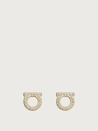 Iconic Gancini earrings in gold-tone metal adorned with sparkling crystals. A touch of light and elegance to complete your outfit. Height 8,7 mm, width 9 mm. - Composition: brass and glass - Small - Made in ITALY - Product code: 760123 696576