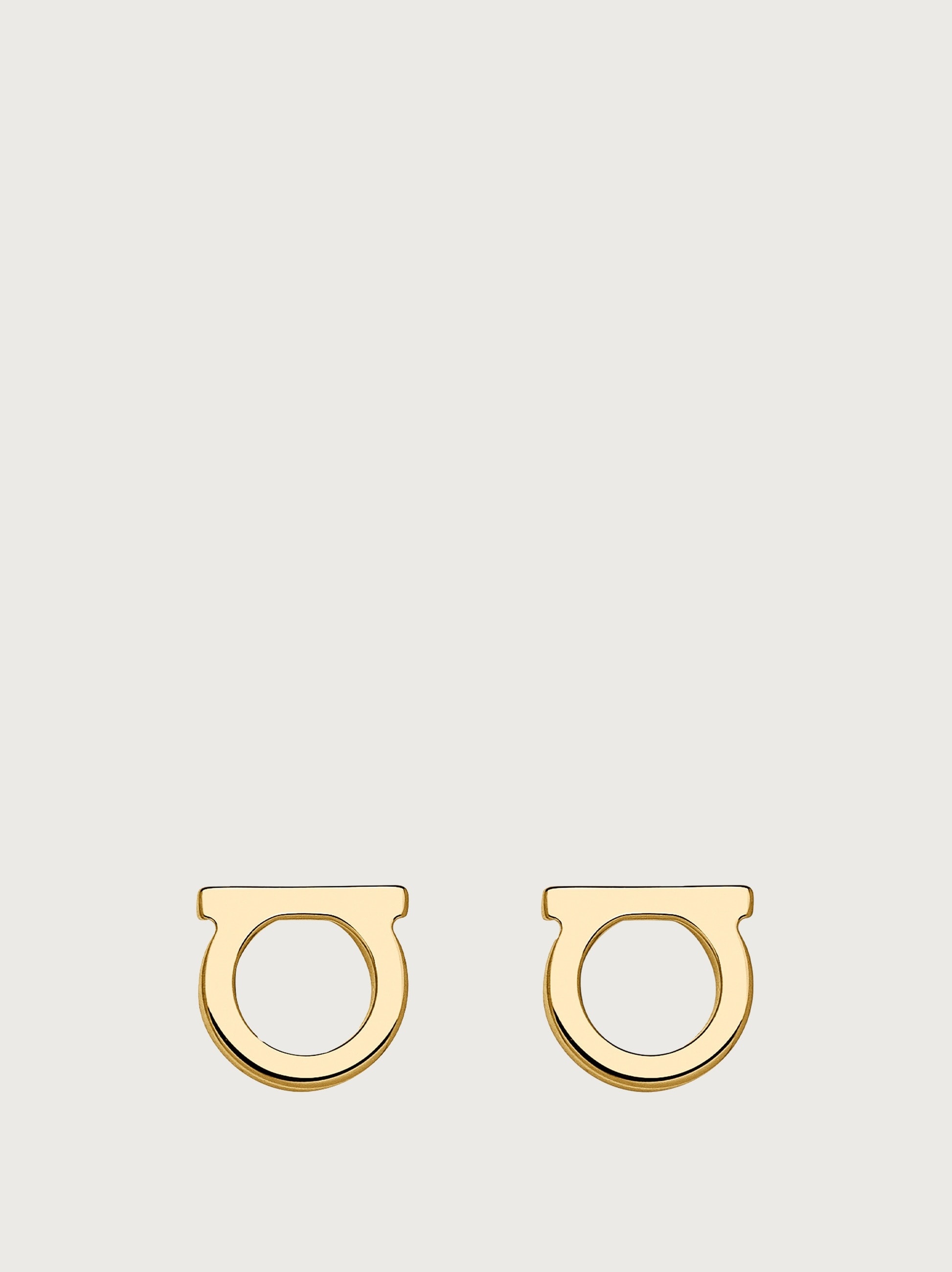 Minimal and contemporary, these elegant earrings are made with a flat Gancini with a glossy gold finish. A modern version of a timeless classic. Height 8,5 mm, width 8 mm. - Composition: brass - Small - Made in ITALY - Product code: 760120 696432