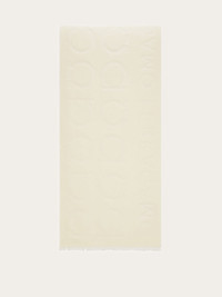 A timeless Ferragamo icon, the Gancini silhouette takes center stage in this wool and silk scarf. Soft and smooth to the touch, it features a two-tone jacquard weave paired with matching logo lettering for a refined finish. - length 70.8 IN width 15.7 IN - Composition: 90% pure wool and 10% silk - Made in ITALY - Product code: 321228 791381