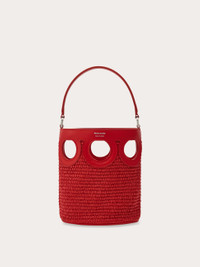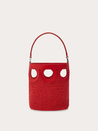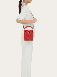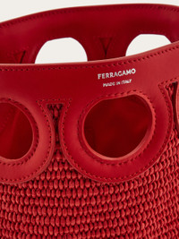 A beautifully woven design and intricate Gancini inlay bring a refined edge to this new mini bucket bag. Celebrating Ferragamo’s heritage in material craftsmanship, it’s a standout accessory for the warmer months, brought to life in vibrant seasonal hues. - height 6.6 IN length 7.0 IN width 4.7 IN - Composition: raffia e calfskin - Handle drop: 5.1 in/13 cm - Extra Small - Made in ITALY - Product code: 220952 783846
