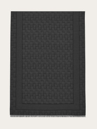 The new Gancini monogram print adorns this metropolitan stole. The large smooth frame with incorporated logo complements the design with a graphic and elegant edge. - length 78.7 IN width 27.5 IN - Composition: 47% cotton, 37% wool and 16% silk - Made in ITALY - Product code: 520121 776153