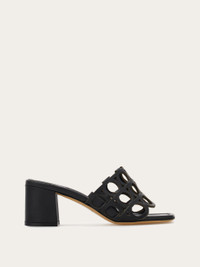 Expertly woven from soft calfskin leather, the upper of this new Ferragamo sandal is a celebration of the iconic Gancio outline. The chunky covered heel adds a modern twist and a comfortable fit. - Composition: calfskin - Heel 5.5 cm - Made in ITALY - Product code: 01J959 782527