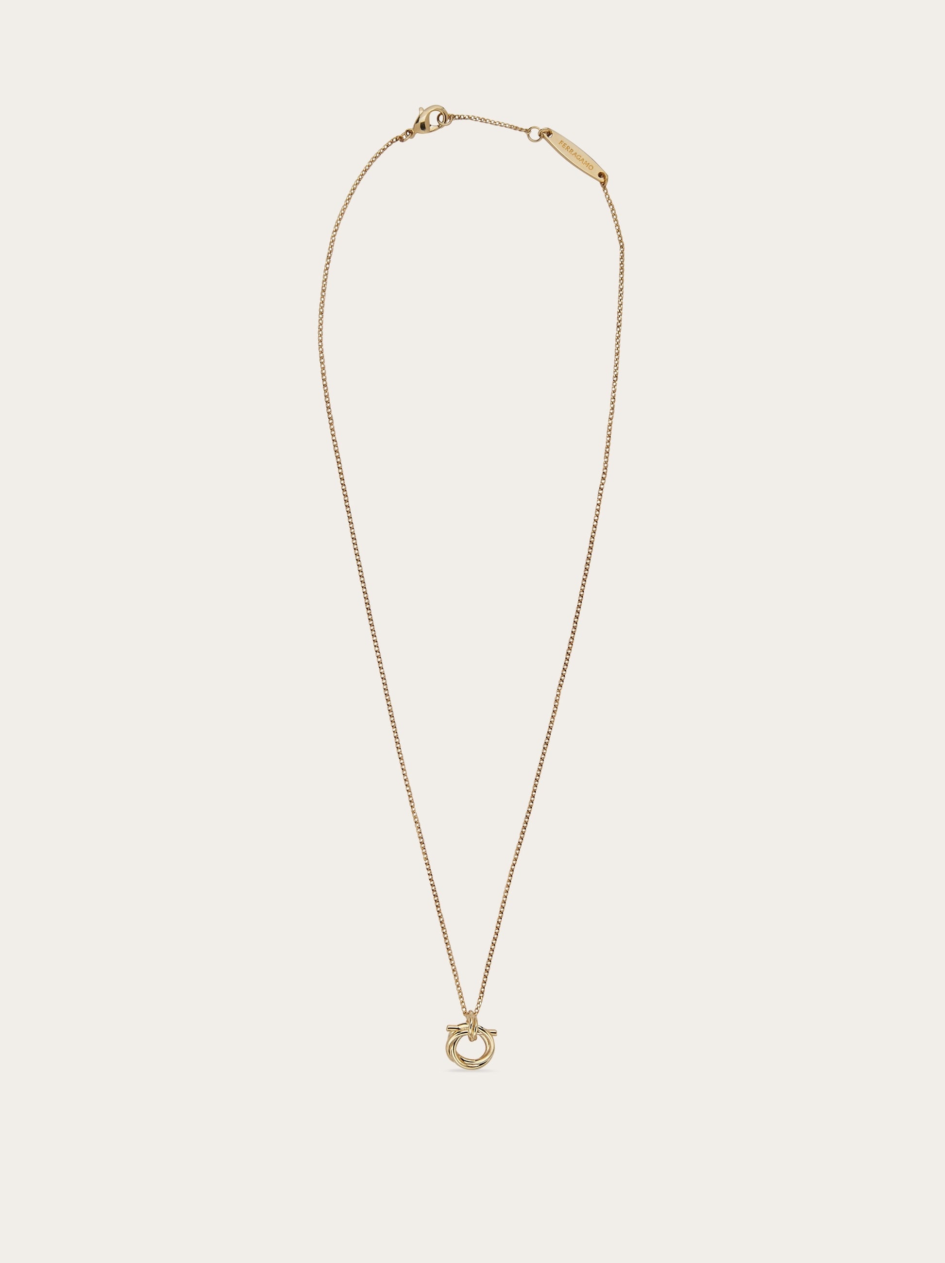 Golden brass link necklace with adjustable fastening and small customized tag with the brand name on the back. The pendant is a Gancini silhouette that has been given a new twisted aesthetic. - Composition: brass - Made in ITALY - Product code: 760672 765594