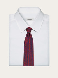 A new, refined pattern featuring interlinked Gancini creates a tie pattern that exudes both elegance and statement. Crafted from pure silk twill, it’s designed for the most formal gentlemen and their wardrobes. - Composition: 100% silk - Made in ITALY - Product code: 351217 778568