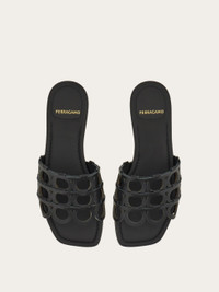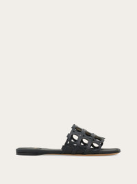 A simple silhouette with intricate details. Laid back yet iconic, the new Gancio slide showcases the expert workmanship of the House of Ferragamo. A series of Gancini links in the chain-like upper is complemented by the sleek tonal insole. - Composition: calfskin - Heel 0.5 cm - Made in ITALY - Product code: 01J840 782514