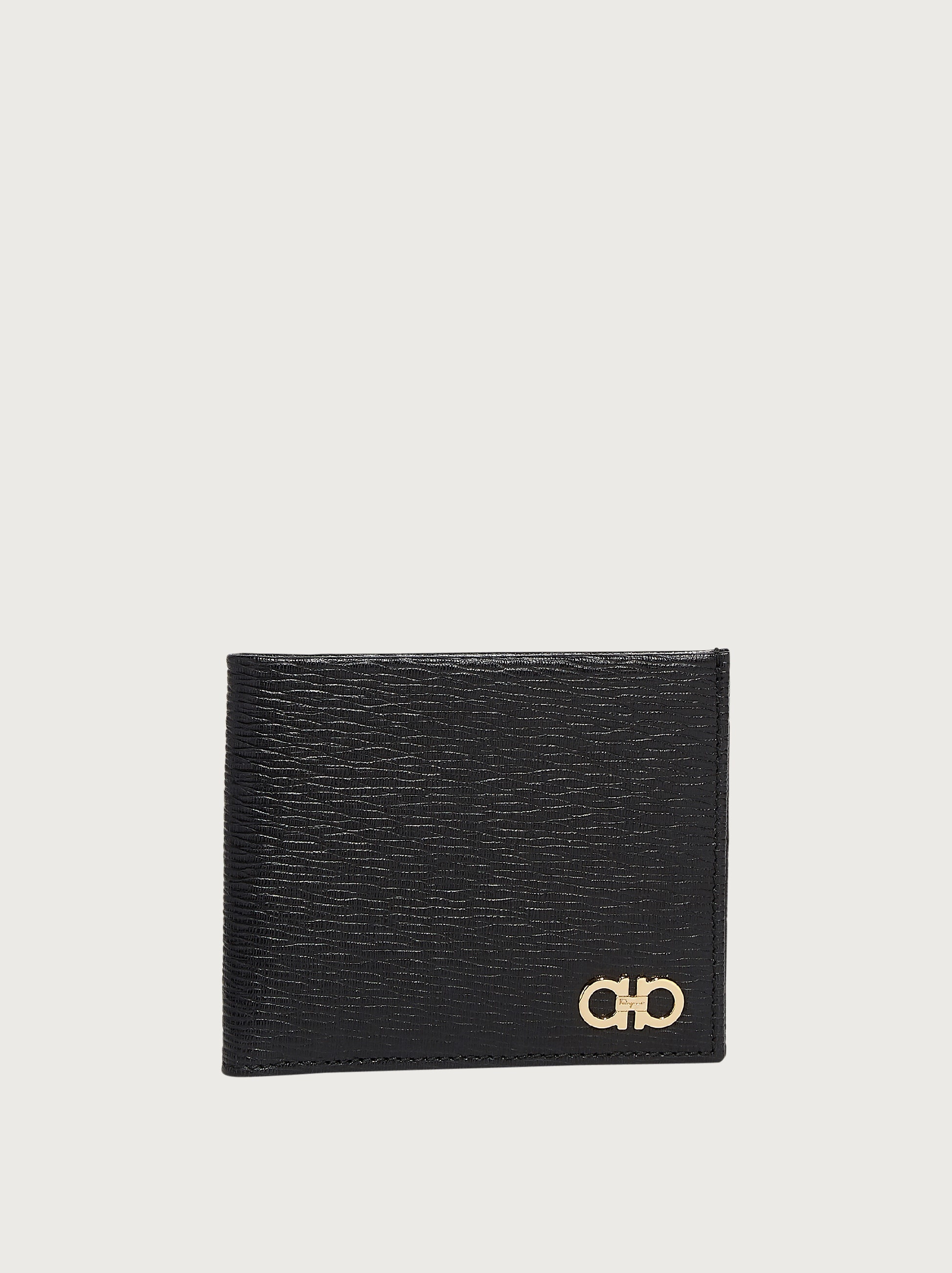 Decorated with a golden Gancini buckle, this wallet is the perfect balance of essential design and functionality down the very last detail. The interior is perfectly organized with compartments for banknotes and flat pockets for papers and documents. The textured leather features a subtle, refined design, perfect for the modern gent. - height 3.5 IN length 4.3 IN - Composition: hammered calfskin - Made in ITALY - Product code: 66A063 685950
