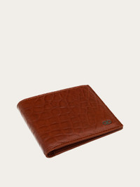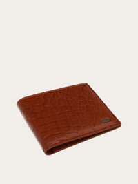 With its outer panels in alligator leather, this new Ferragamo wallet has a decidedly luxurious look, echoed by the burnished Gancio applied to the bottom corner. Inside, the calfskin lining has several card slots, and a large slot for banknotes. - height 3.3 IN length 4.3 IN - Composition: alligator - Made in ITALY - Product code: 661451 776979