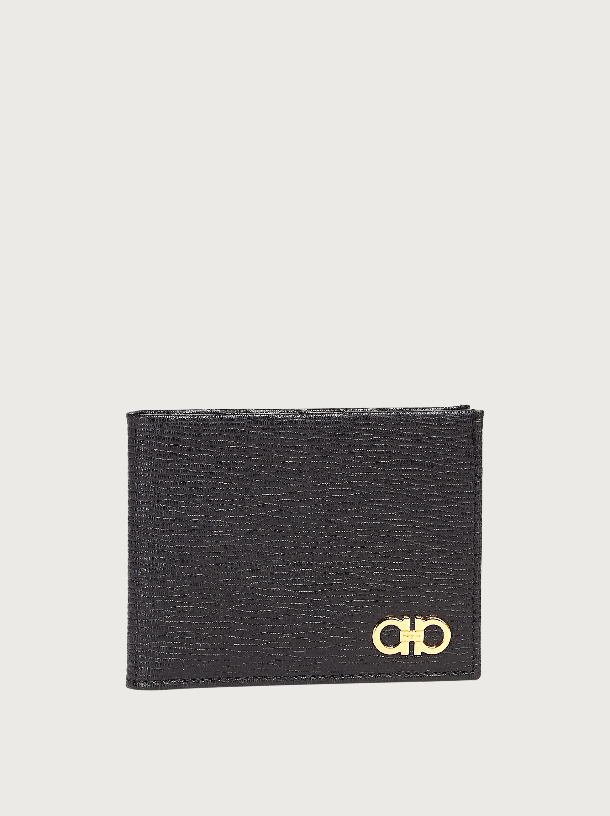 Classic lines and timeless elegance: this bifold wallet is crafted from soft hammered calfskin. The inside boasts several card slots, a bill compartment, and a practical ID holder with transparent window. Embellished with a glossy metal Gancini detail on the front. - height 3.3 IN length 4.3 IN - Composition: hammered calfskin - Made in ITALY - Product code: 66A066 685988