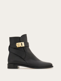 With an almond toe and subtle urban style, this ankle boot is truly versatile. The tongue and wrap around ankle strap are complemented by a golden Hug buckle, completed by a double leather sole with rubber island. - Composition: calfskin - Made in ITALY - Product code: 01K224 784637