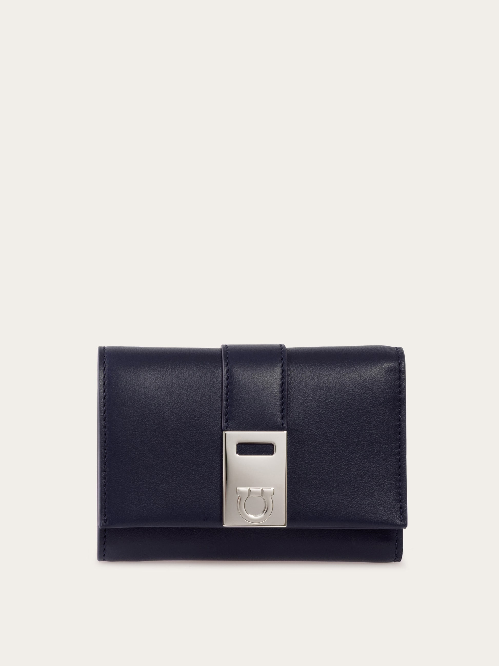 Compact enough to fit into any handbag, the Hug Collection wallet reveals its refined elegance in its essential lines with Gancini closure and in the contrasting hues. Spacious enough to hold all your essentials, it features a compartment for bills, slots, and flat pockets for cards and documents, and a zip pocket along the edge for coins - height 3.7 IN length 4.7 IN width 0.7 IN - Composition: calfskin - Made in ITALY - Product code: 220630 785718