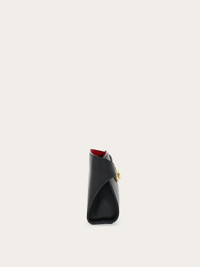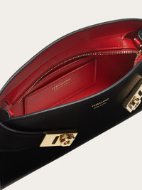 Understated yet unmissable, the Ferragamo mini Hug bag is the perfect clutch to elevate any look. Made of calfskin treated with vegetable anilines, the rich leather follows the iconic Hug outline, with wide straps that wrap around the sides and fasten at the front via two golden Gancio clasps. A zip fastening opens to reveal a contrasting interior for a pop of color, while the removable leather strap offers a hands free styling option. - A) Height 5.5 IN B) Length 9.4 IN C) Width 2.1 IN - Composition: calfskin - Mini - Made in ITALY - Product code: 218964 774628