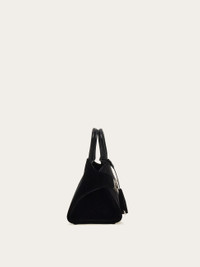 The compact Hug bag, the perfect balance between elegant and playful. Faithful to the original silhouette, this dressed up version features crystal embellished palladium-tone Gancio clasps with matching covered keyring that dangles from the top handle. Custom studs protect the base, and a removable shoulder strap offers a hands-free styling option. - A) Height 5.5 IN B) Length 8.8 IN C) Width 4.3 IN - Composition: fabric and calfskin - Handle drop: 2.9 in/7,5 cm - Extra Small - Made in ITALY - Product code: 219902 786114