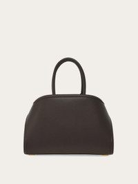 Cool and current with an iconic appeal, the new iteration of the Ferragamo Hug featuring the timeless Gancini. Soft semi-gloss calfskin 3D trims frame the jacquard dials, woven in a hypnotic pattern of Gancini silhouettes, and two golden Gancini buckles fasten at the front. Rectangular foot studs protect the base, and a removable shoulder strap offers hands free styling. - A) Height 8.6 IN B) Length 12.4 IN C) Width 7.4 IN - Composition: fabric and calfskin - Handle drop: 5.5 in/14 cm - Medium - Made in ITALY - Product code: 219847 777527