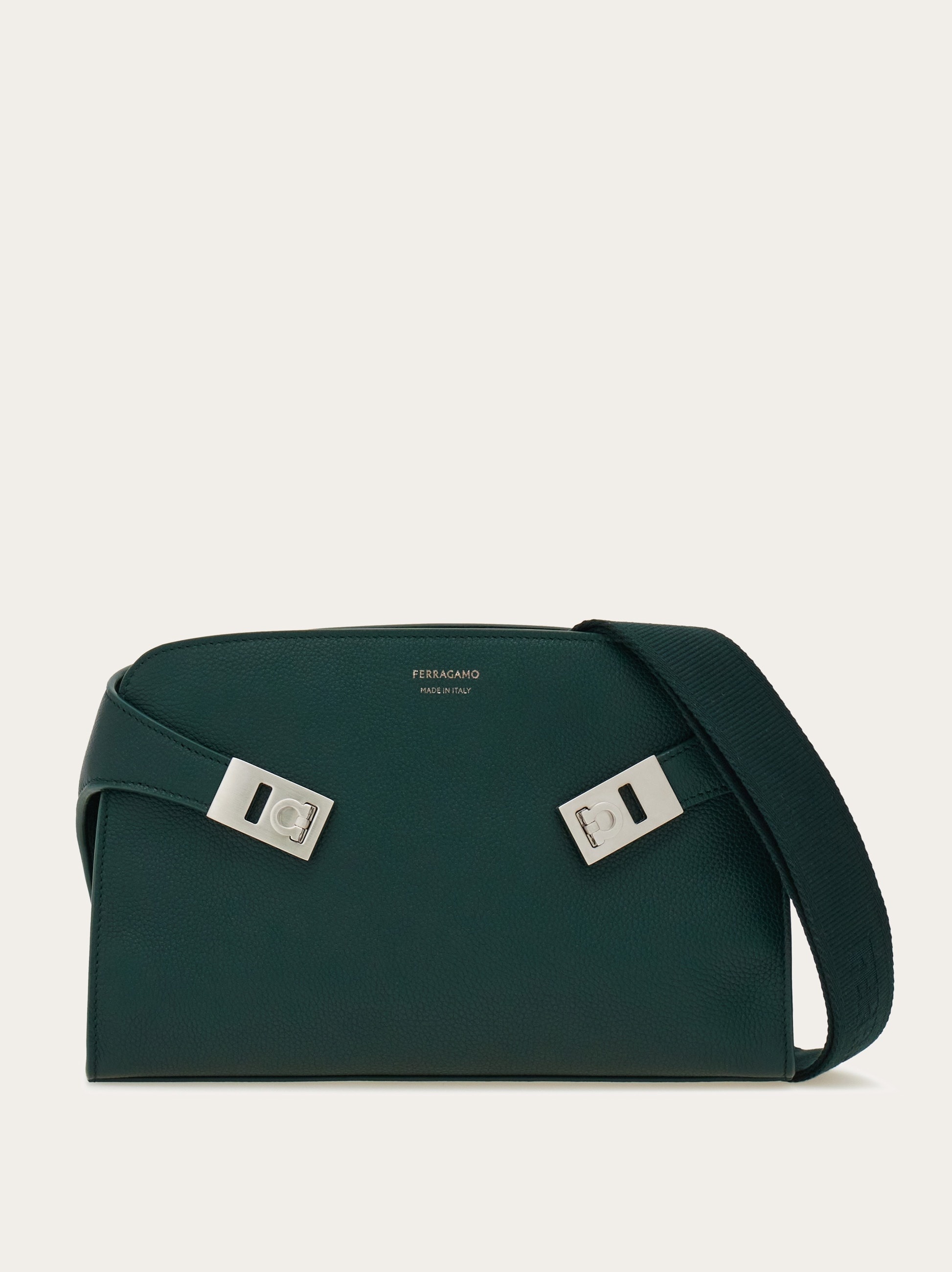 Inspired by the Hug silhouette, this new messenger back brings an urban twist to a contemporary icon. Cut from hammered calfskin leather, the design features tonal matte Gancio buckles and an adjustable custom jacquard strap. Lined interior with zip pocket. - height 7.2 IN length 10.6 IN width 2.3 IN - Composition: hammered calfskin - Made in ITALY - Product code: 241790 784627