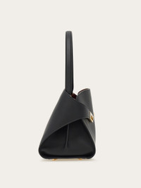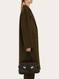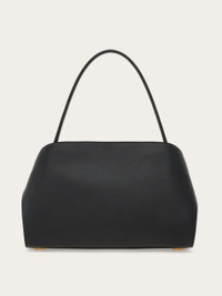 The Hug Soft shoulder bag features the distinctive enveloping shape of the Hug in a deconstructed version. Made of calfskin it features a single handle for a softer silhouette on the front panel, which is decorated with golden Gancini buckles. Closed with an internal flap equipped with magnets and a practical T-bar, this version features a contrasting lining for a refined color block effect. The central zipped compartment divides the interior into perfectly organized sections. Adjustable and detachable strap for multiple styling options. - A) Height 10.0 IN B) Length 13.3 IN C) Width 6.1 IN - Composition: calfskin - Handle drop: 7.2 in/18,5 cm - Medium - Made in ITALY - Product code: 219816 781694