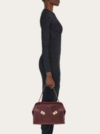 A harmonious blend of clean lines and distinctive accents define this take on the iconic Hug. The soft Hug bag by Ferragamo, an intriguing silhouette cut from washed calfskin leather with golden hardware and a fully organized interior with central zip. Adjustable, removable shoulder strap. - A) Height 10.0 IN B) Length 13.3 IN C) Width 6.1 IN - Composition: washed calfskin - Handle drop: 7.2 in/18,5 cm - Medium - Made in ITALY - Product code: 219816 788916