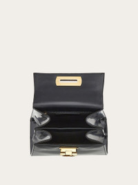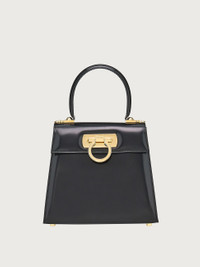 Small top handle bag in brushed-off calfskin with a gold Gancini clasp. Iconic Top Handle bag is a re-release of one of the Ferragamo brand’s best known styles and it embodies the many facets of the female essence. Its extremely versatile size makes it the perfect companion for any occasion. - A) Height 7.0 IN B) Length 8.0 IN C) Width 3.9 IN - Composition: brushed-off calfskin - Handle drop: 3.9 in/10 cm - Small - Made in ITALY - Product code: 212193 749021