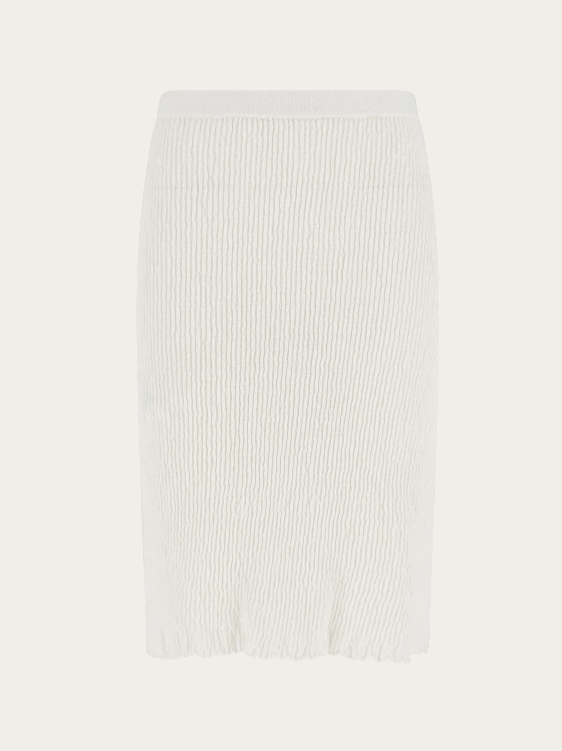 Soft and enveloping, this knitted skirt is made from claque linen. The unique features of the fabric are enhanced by a ribbed construction with raw hem for a current edge, while the elasticated waist and soft inner lining complete the design. Pair with a seasonal polo for the perfect off duty look. - Composition: 95% linen, 5% polyamide - Model measurements: Height 5' 9"/175 cm; Bust 30"/76 cm; Waist 24"/61 cm; Hips 34½"/87 cm - Model wearing: 38/XS - Made in ITALY - Product code: 13H266 783889