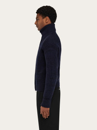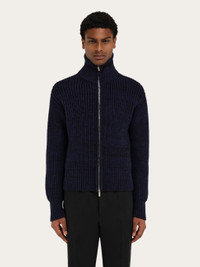 This high-collar jacket is made of compact virgin wool yarn in a Fisherman's rib knit. Equipped with a two way zip, it's cut to a regular fit with ribbed hems that define the silhouette. The customized metal tag on the back of the collar and matching pullers add a signature touch. Perfect for completing casual yet sophisticated outfits during seasonal transitions. - Composition: 100% pure virgin wool - Made in ITALY - Product code: 122214 780549