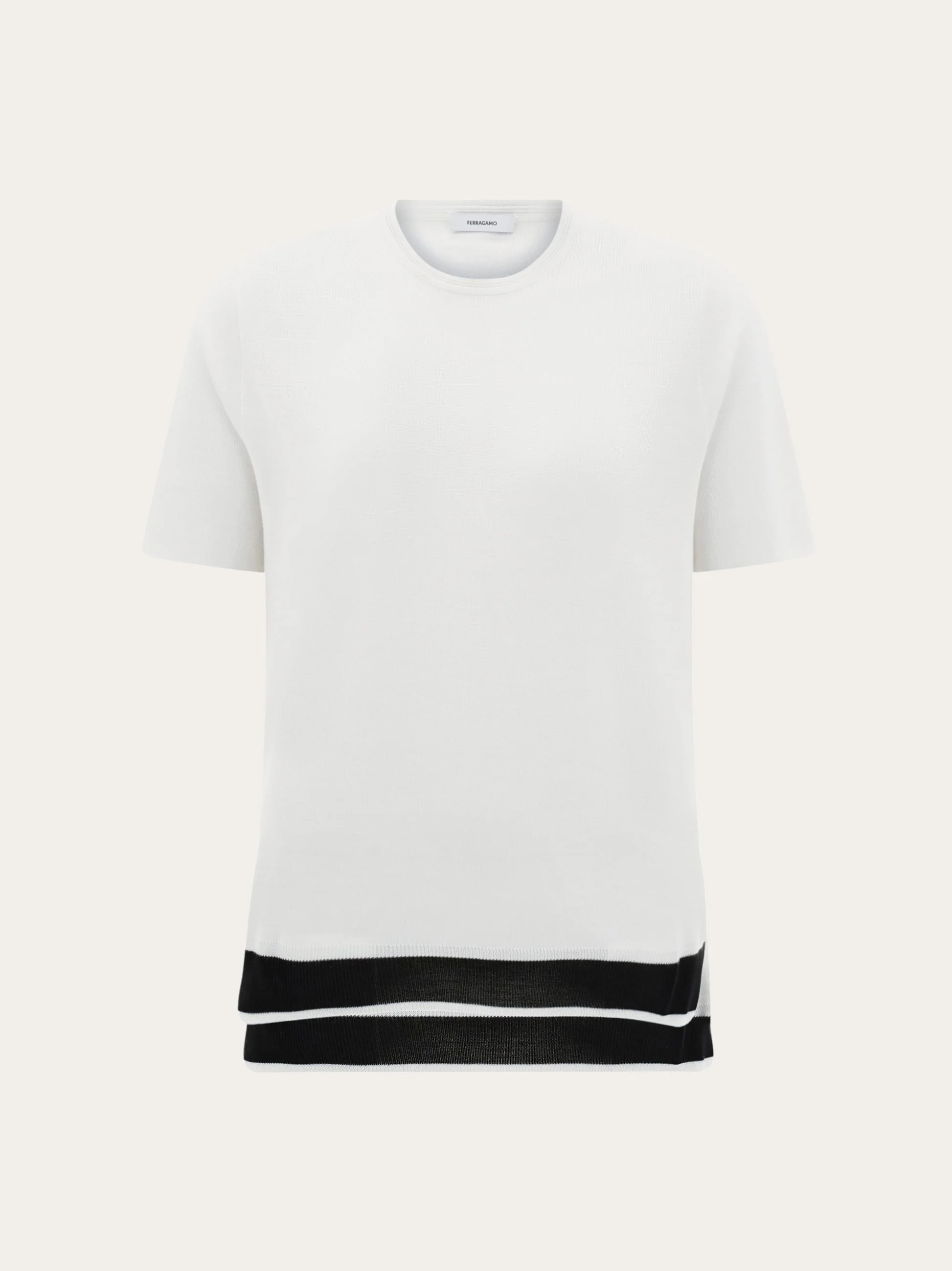 Simple staples with a luxurious feel, the perfect layering or stand alone piece for effortless style. This pure silk crewneck tee is detailed at the bottom with contrasting colors block lines and a custom tab at the back of the neck. - Composition: 100% silk - Made in ITALY - Product code: 13I075 791780